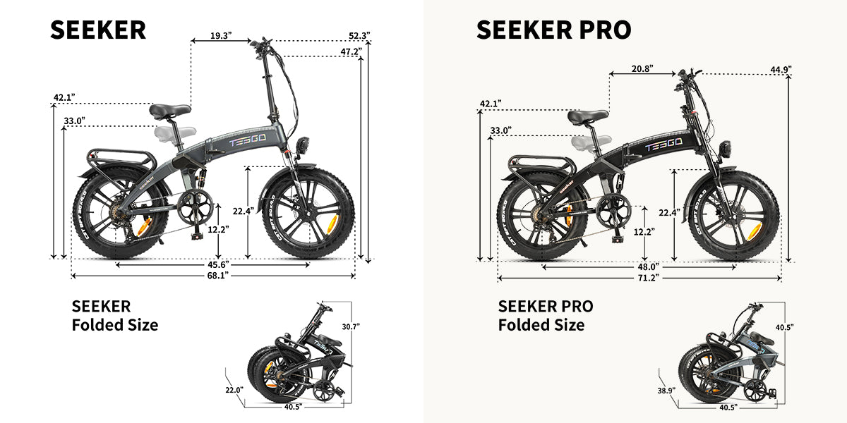 The Seeker Pro combines a lightweight, stylish frame with integrated full suspension for a smooth ride on rugged terrain. Its foldable design ensures easy storage and transport, making it your ideal adventure companion with a perfect blend of off-road capability and comfort.