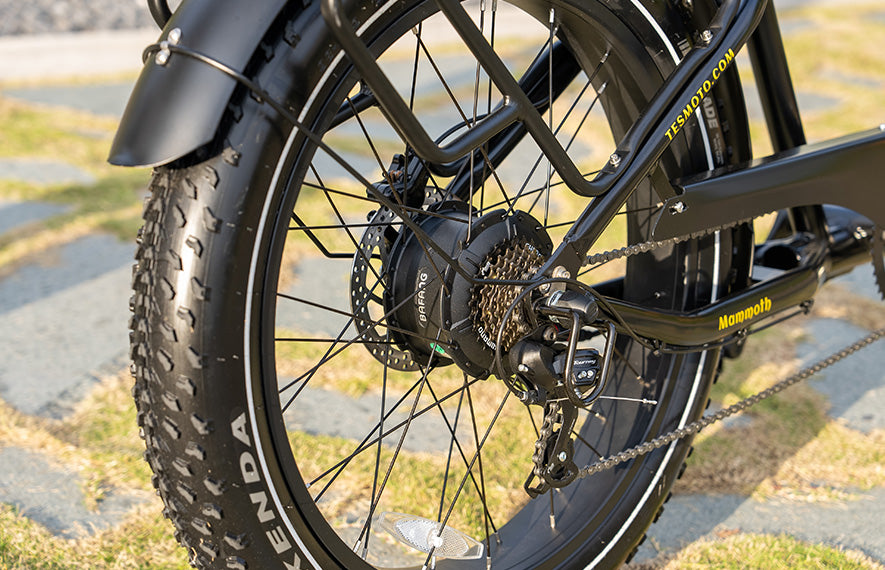MAMMOTH is equipped with a 52V 1000W BAFANG powerful ebike, with a maximum speed of 34mph.