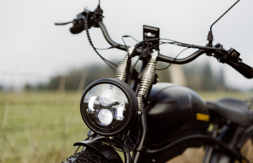 The extra-large headlight, houses four extremely bright bulbs and presents a bold headlight design without a horn. This emphasizes the powerful and bold headlight style.