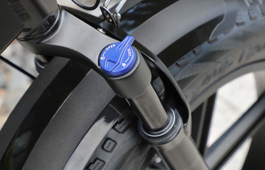 Fat tires accompany the front suspension and provide excellent grip and outstanding damping characteristics.