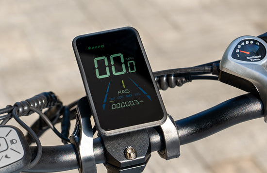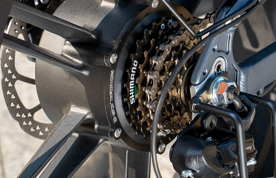 The LCD provides effortless control of the Seeker Hum e-bike. With the throttle in your hand, you can select one of five levels of pedaling assistance or turn the assistance off to exercise at your own pace. The Shimano 7-speed gears and intuitive LCD make riding the Seeker Hum a breeze.