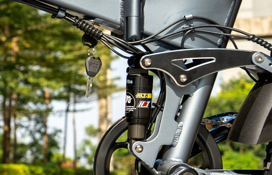 The Seeker Hum is characterized by a lightweight frame accompanied by a seamlessly integrated full suspension system, ensuring a smooth ride on challenging terrains. Its robust yet foldable design facilitates convenient storage and transportation, making it an ideal companion for every adventure. Strike the ideal equilibrium between off-road capability and comfort with the Seeker Hum, and consider the optional rear seat for added versatility.